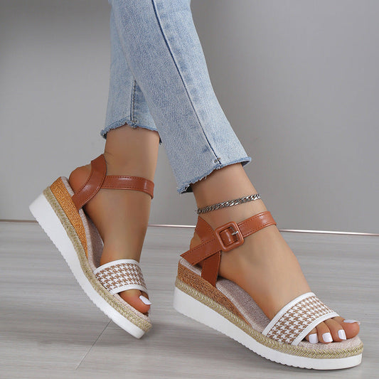 Sandales à Imprimé Pied-de-Poule – Élégance Décontractée